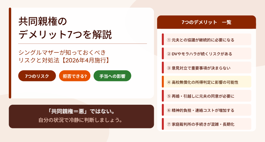 共同親権のデメリット7つを解説|シングルマザーが知っておくべきリスクと対処法【2026年4月施行】