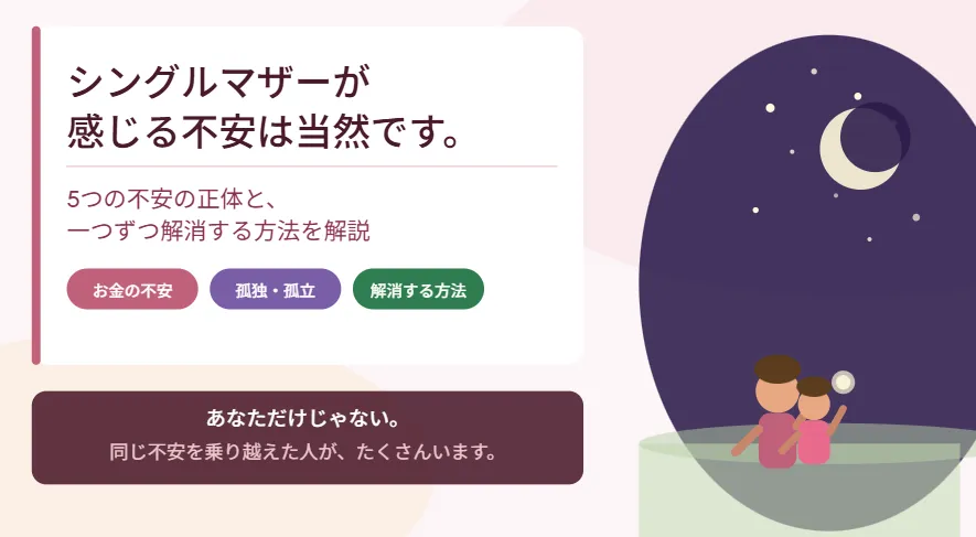 シングルマザーが感じる不安は当然です。5つの不安の正体と、一つずつ解消する方法