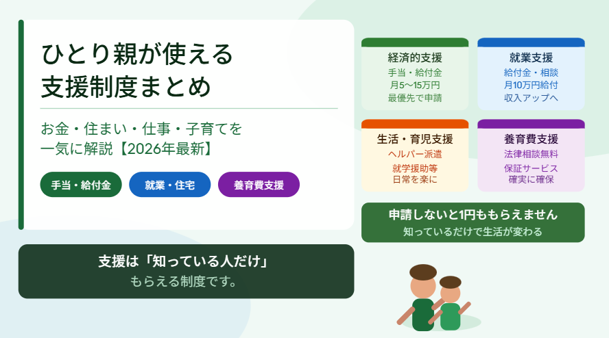 ひとり親が使える支援制度まとめ【2026年最新】お金・住まい・仕事・子育てを一気に解説